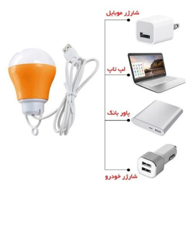 لامپ USB قابلیت متصل به پاور بانک و تمامی پورتهای USBبا ولتاژ5